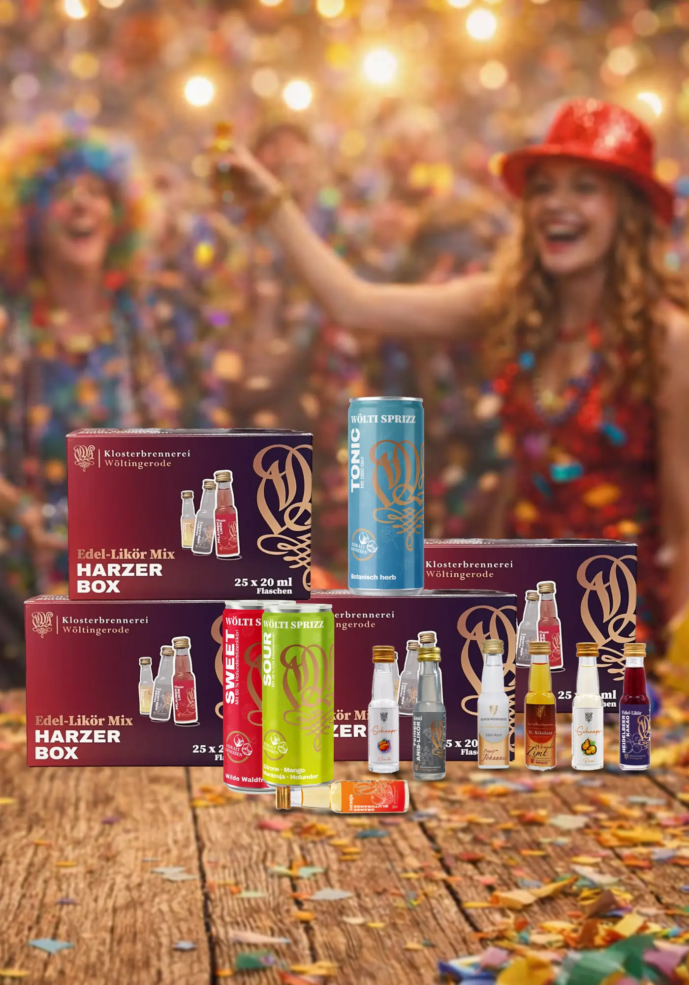 Machen Sie Ihre Karnevalsfeier unvergesslich – mit dem exklusiven Karnevals-Partyset der Klosterbrennerei.